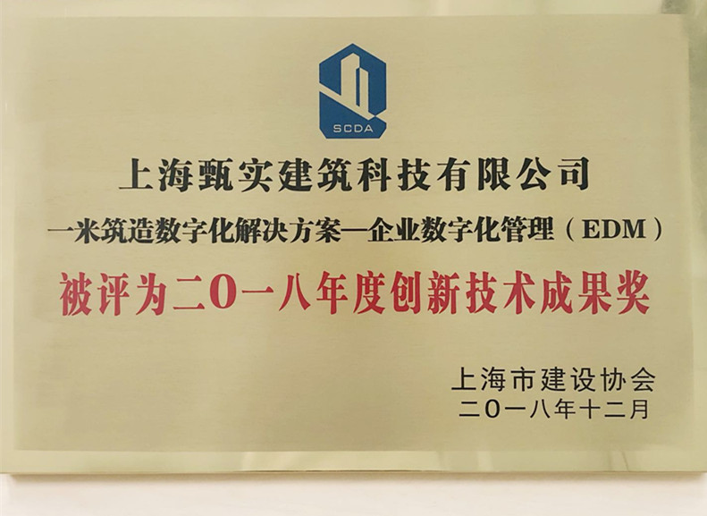 2019年5月14日上海市建设协会公布了2018年度“示范项目、创新技术”获奖名单,1m筑造EDM喜获“创新技术类”成果奖。